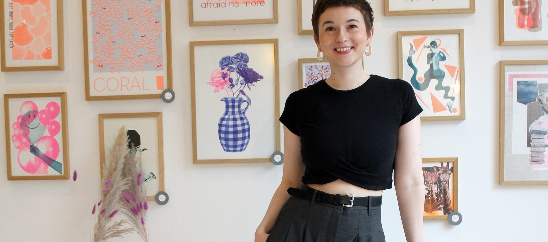 Ich führe ein Risographie-Studio in Krefeld Uerdingen. Dort gebe ich Workshops, in denen ich den Teilnehmer:innen das Druckverfahren der Risographie näherbringe. Das geschieht meistens mithilfe der Collage-Technik. Und wenn ich nicht gerade Workshops gebe, dann stelle ich eigene Papeterie-Produkte und Kunstdrucke mit dem Risographen her.