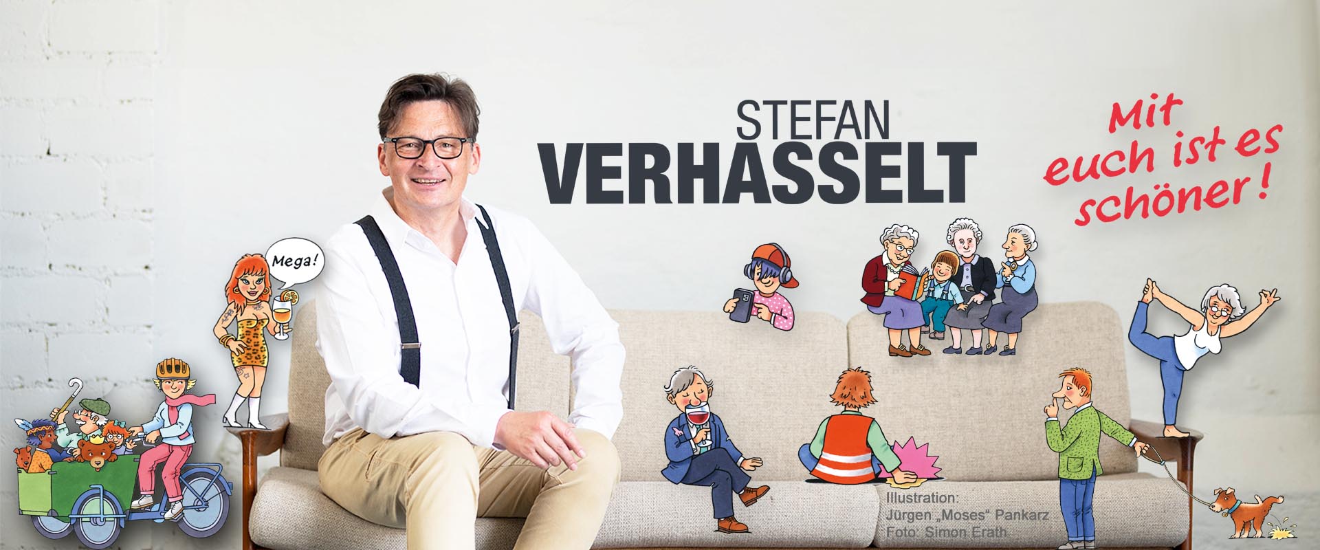 Der Niederrheiner unter den Kabarettisten verfügt über feinsinnigen, stellenweise aber auch schrägen Humor. Auch in seinem sechsten Kabarettprogramm philosophiert er sich durch die Eigenarten und Absurditäten unserer Gesellschaft. Im neuen Programm geht‘s um Kühe im Home-Office, Hunde im Übergangsmäntelchen und künstliche Intelligenz im Kabarett. Man erfährt auch, warum Jugendliche keinen Spargel mehr essen, dafür aber alles in „Bowls“ – wie es um uns herum um den Datenschutz bestellt ist und was am Niederrhein sonst so alles „geht“. Das Programm lebt auch vom „Assoziationspraktizieren“ – eine Eigenschaft, die Niederrheinern wie Stefan Verhasselt in die Wiege gelegt zu sein scheint: Gerade noch grübeln wir darüber, wann wohl das nächste Mal die braune Tonne geleert wird, um uns im nächsten Moment dem Gerücht zuzuwenden, wer gerade im Sterben liegt.