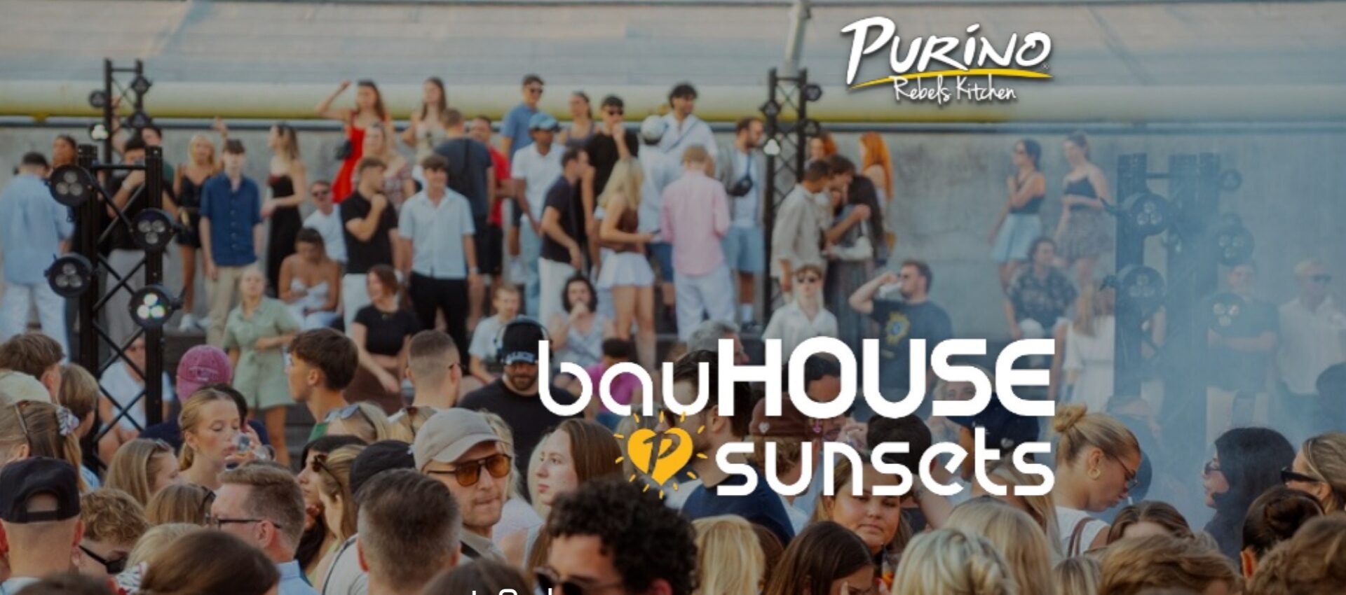 Auch diesen Sommer gibt es wieder vier Termine, die ihr euch unbedingt vormerken solltet: 1. Mai, 7. Juni, 2. August und 13. September. Die Macher der bauHOUSE sunsets freuen sich, euch auch 2026 wieder so zahlreich zu ihren wundervollen Abenden begrüßen zu dürfen wie im letzten Jahr. Lasst euch von der einzigartigen Atmosphäre der Purino Rebels Kitchen – den lebendigen Farben, inspirierenden Augenblicken, der einzigartigen Architektur und den Beats von Avant und Pele Trix verzaubern.