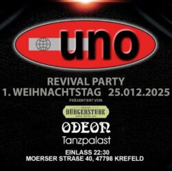 Nun ist es komplett, das Vierteljahrhundert! Zum 25. Mal startet die UNO Revival Party am Ersten Weihnachtstag und bereits seit …